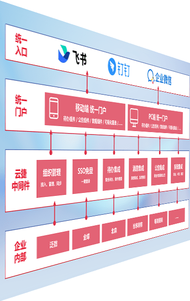 对协作平台提供支持服务,,支持企业应用与协作平台对接,,,包含组织同步、、、、消息集成、、、、待办集成等。。支持目前主流的协作平台:钉钉、、、、企微和飞书。。